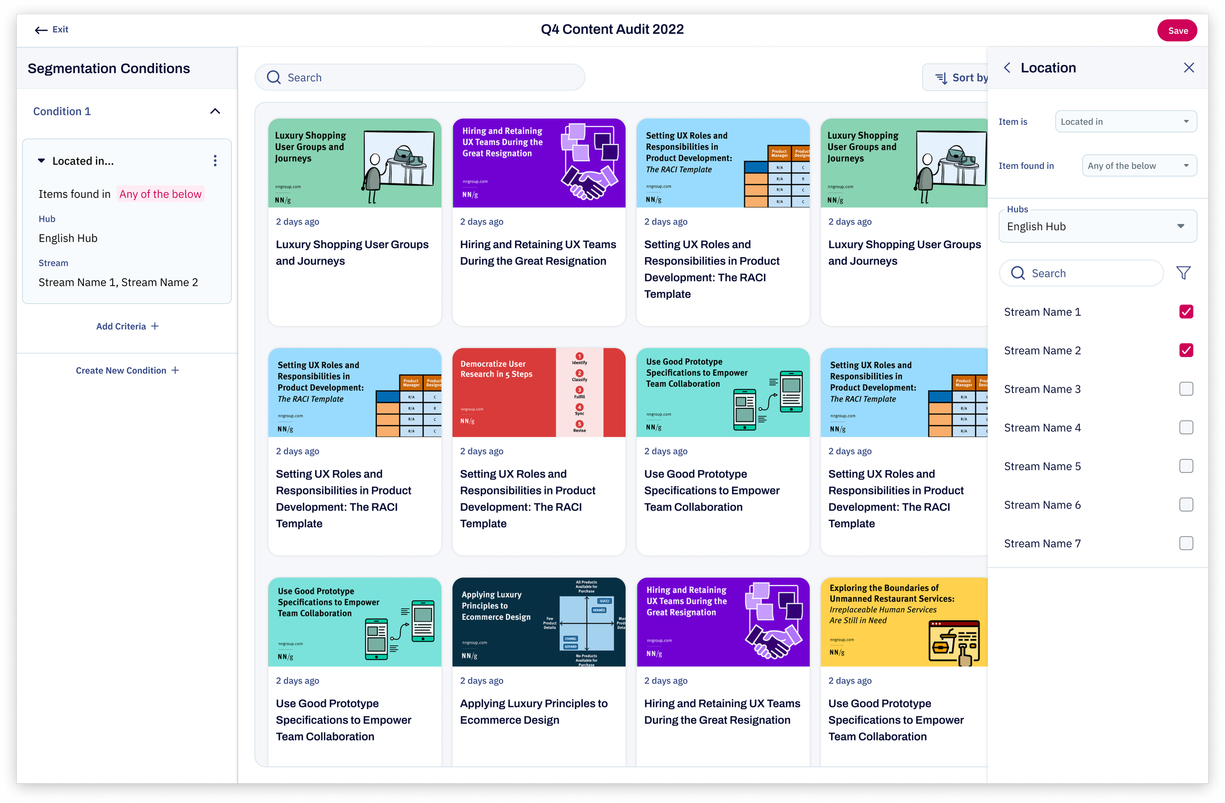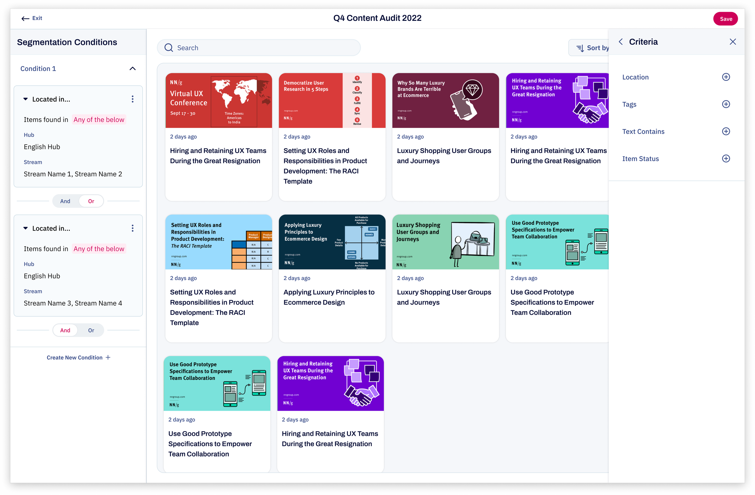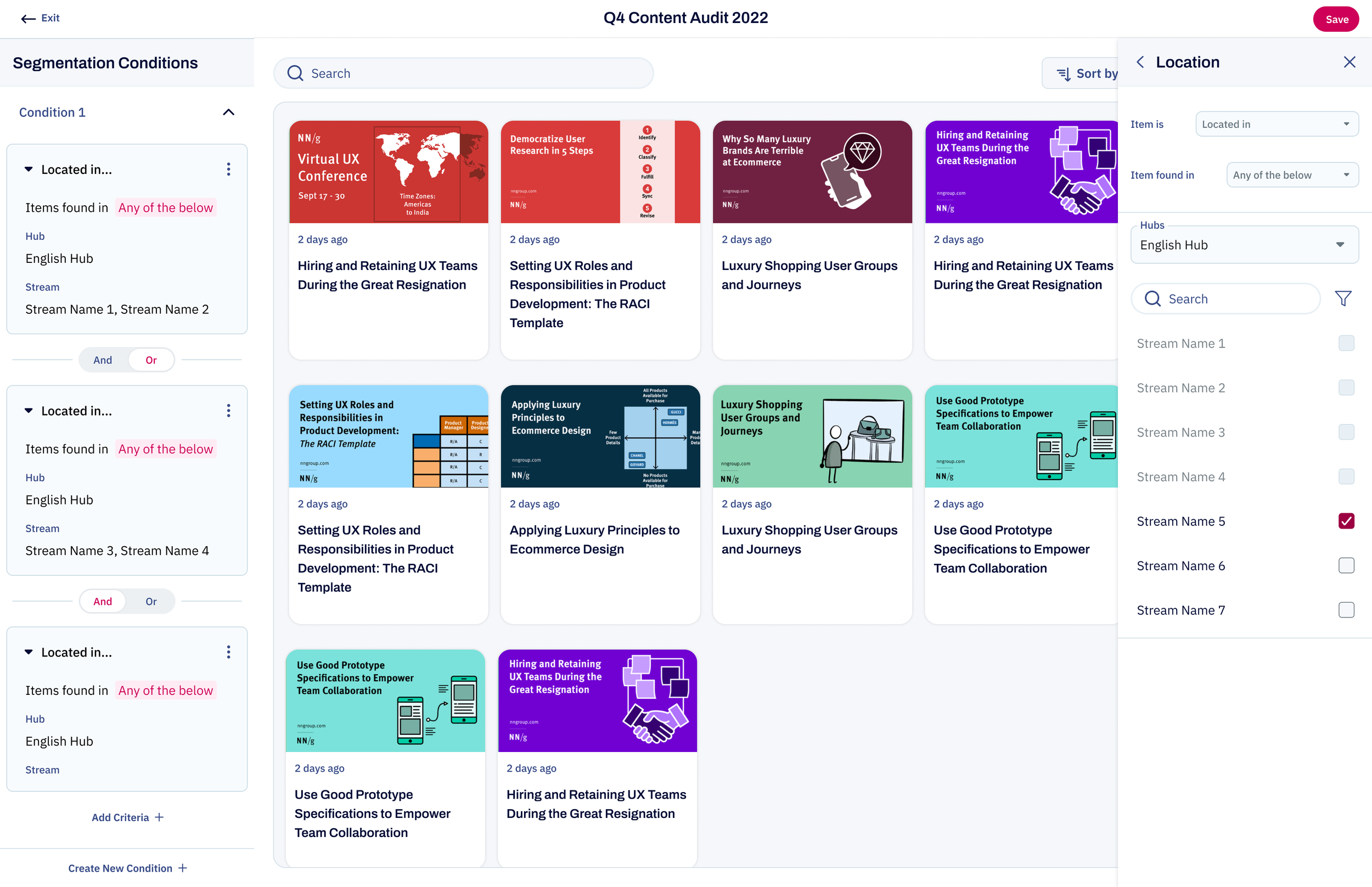 How might we deconstruct a brittle, legacy filtering system to Empower marketers to go from searching and sorting their repository to Orchestrating and defining rules that can automate the flow of content?
