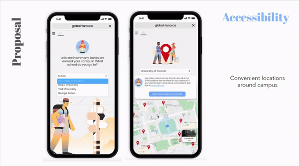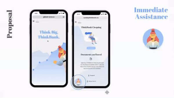 Our ideation led to a responsive microsite powered by a virtual assistant, Luna, to solve for the steep learning curve of Canadian banking.